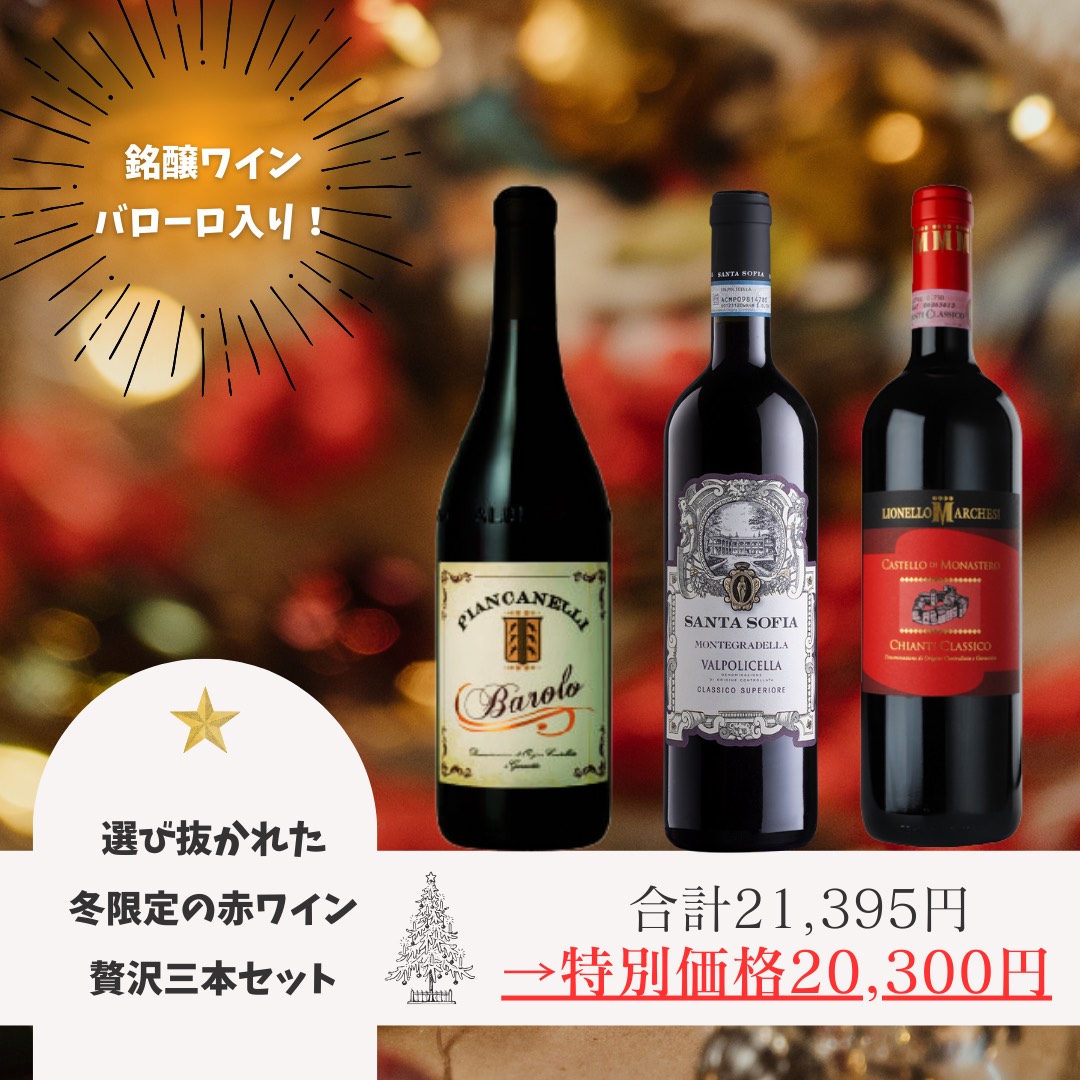 寒い季節にこそ楽しみたい、イタリア赤ワインの王道・濃厚・万能の3本を贅沢にセットにしました。